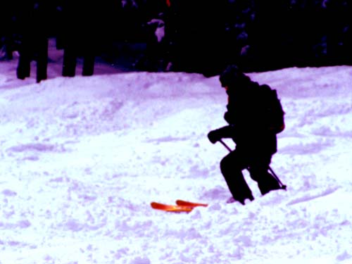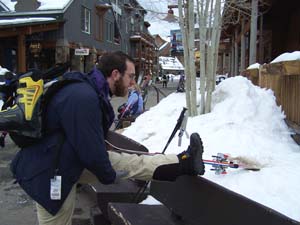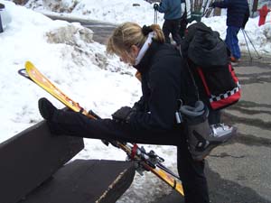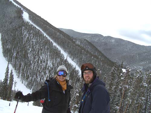 | We’re late again with the news but we skied yesterday and were too tired to write. So here’s the scoop. We got up on Wednesday, hoping that Billy would feel Ok enough to ski. Checked out and got my ticket at the front desk at a discounted rate. (Yeah!) We went to breakfast at Butterhorn Bakery, got stuff to go. Headed up to Keystone and got Billy’s season pass. They never even asked him for ID- just asked his last name, took his picture and gave him his pass. We found parking that we thought would be close, but ended up being all the way through the town, over a bridge and up a hill from the lift. We were exhausted by the time we got to the lift lines. Decided we would take it easy and do a few blue runs before we got going. First run was great and then we didn’t check a map and ended up on Diamondback (I think) which was a black diamond with two foot high moguls. Ok, then we were exhausted. Skied a total of 7 (but we decided the black diamond counted as 10), so 17 runs. We were beat by the time we got back to the car, but the skiing was so phenomenal we didn’t care. We drove up to Vail, where we stayed with Josh Maynard, at the timeshare his Mom let him have. Billy will be rooming with Josh in Denver. Josh’s friend Alex was staying with him and they came down to the car to help us bring stuff in. Alex hefted my huge suitcase on his shoulder and carried my small suitcase in his other hand and carried them both up 3 flights of stairs. (It would have taken me about an hour to try to get them up all those stairs) Billy wasn’t feeling well again so I made him soup and then he slept for awhile. Josh, Alex and I went to the store and got stuff for dinner. Alex was totally put out that I was having white wine with steak. Oh, well. (They don’t know how bad I snore when I drink red wine). Sat in the outdoor hot tub, in the snow while Billy and Josh cooked the steaks. Perfectly, I might add. Billy still had a terrible sore throat and didn’t feel real great. Alex and Josh went out to some bar, Billy went to bed! | |